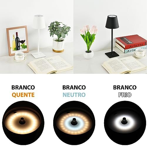 Luminária Abajur Mesa Led Touch Dimerizável S/ Fio Recarregável #DESCRIÇÃO A Luminária Abajur de Mesa LED Touch Dimerizável sem fio é uma opção prática e versátil para iluminar espaços de maneira eficiente e elegante. Ela foi projetada para ser portátil e pode ser recarregada, permitindo que você a utilize em diferentes áreas da casa ou em qualquer lugar que precise de uma fonte de luz conveniente. #IDEIAS Leitura Noturna, Trabalho, Estudo, Iluminação De Ambientes Aconchegantes, Entre Outros. Além disso, a opção de cor da luz permite que você ajuste a iluminação para diferentes atividades, tornando-a uma ótima opção para uso em escritórios, quartos, salas de estar, quartos de bebê, entre outros espaços. #COMO USAR: 1 Toque: Muda A Tonalidade Da Cor Pressionar: Muda A Intensidade Da Luz #CARACTERÍSTICAS Potência: 6W Cores da Luz: Branco Quente, Branco Frio e Branco Neutro Dimerizável: Sim (controle da intensidade da luz) Material: Metal Recarregável: Sim Base Antiderrapante: Sim Interruptor com Toque: Sim – Até 12H de Duração. Dependendo da Intensidade da Luz e da Utilização do Abajur Led: Sim #DIMENSÕES Altura: 38cm Comprimento: 9,5cm Largura Da Cúpula: Ø11cm Peso Aproximado: 670g #ACOMPANHA 1x Luminária 1x Cabo USB-C